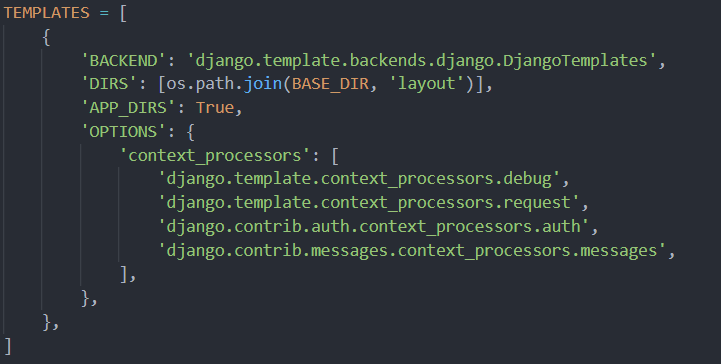 os는 import 해주셔야해요. BASE 디렉토리를 layout으로 하겠다는 말인데요