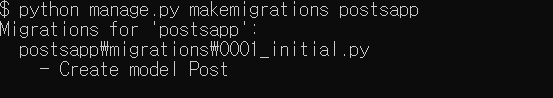 자 git bash에 python manage.py makemigrations App이름 쳐 줍시다.