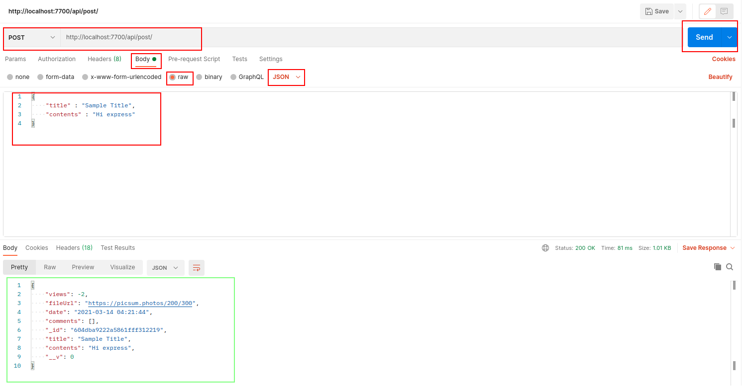 방식을 POST로 바꿔주고 URI 는 http://localhost:7700/api/post/ 를 적어준이유